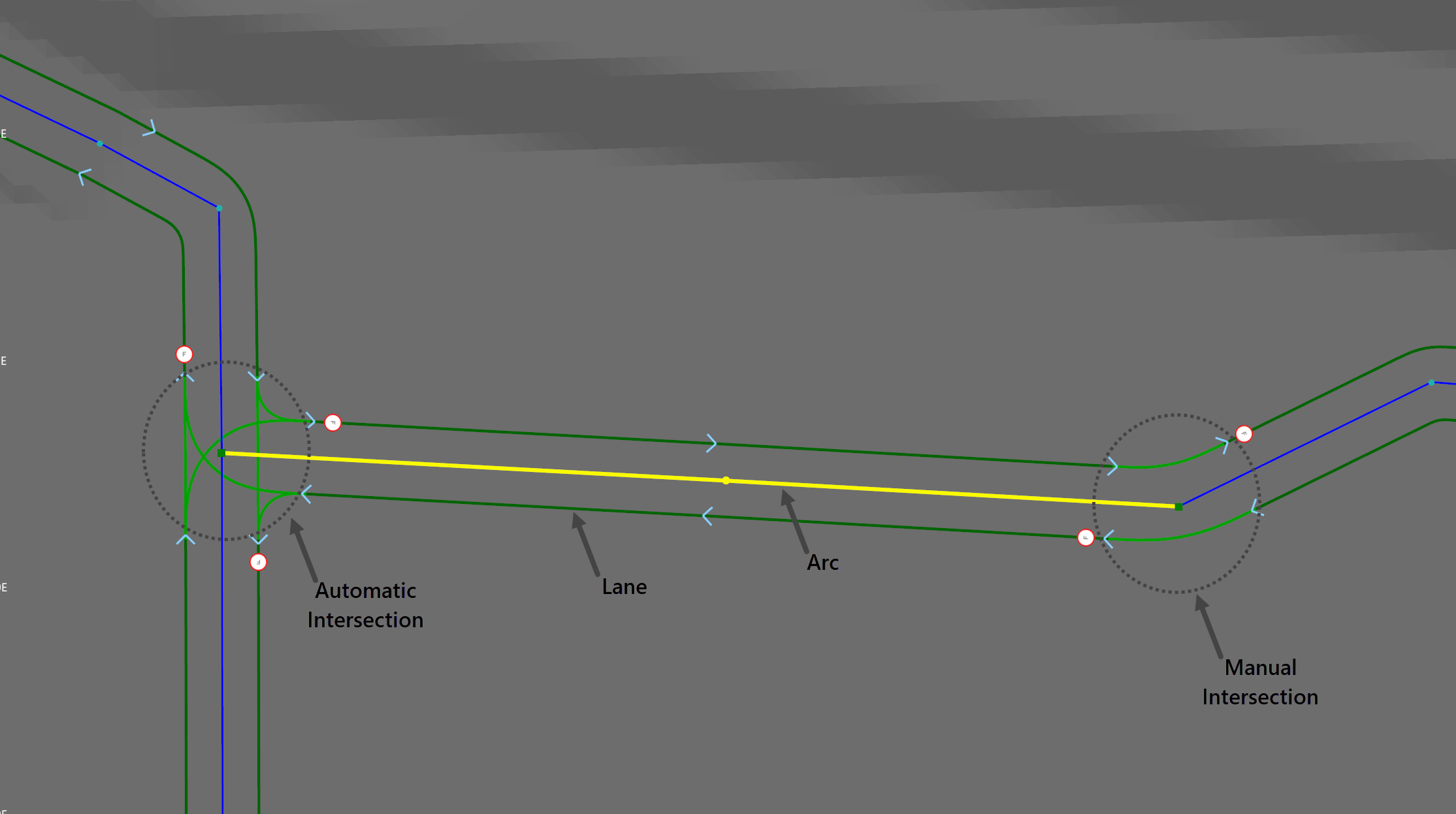 For example, if a stretch of road is double-lane but has a single-lane section in the middle, a separate arc needs to be created for that section: