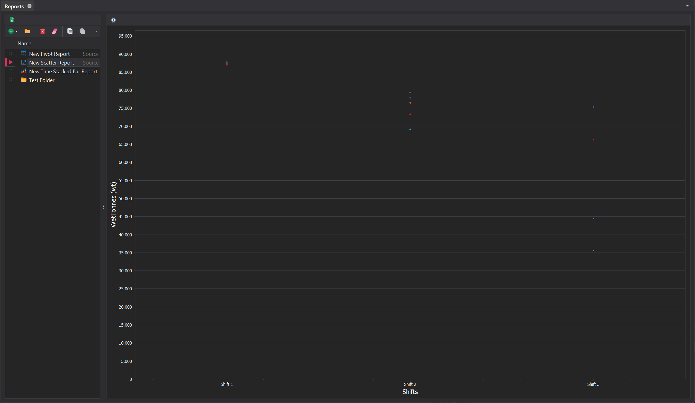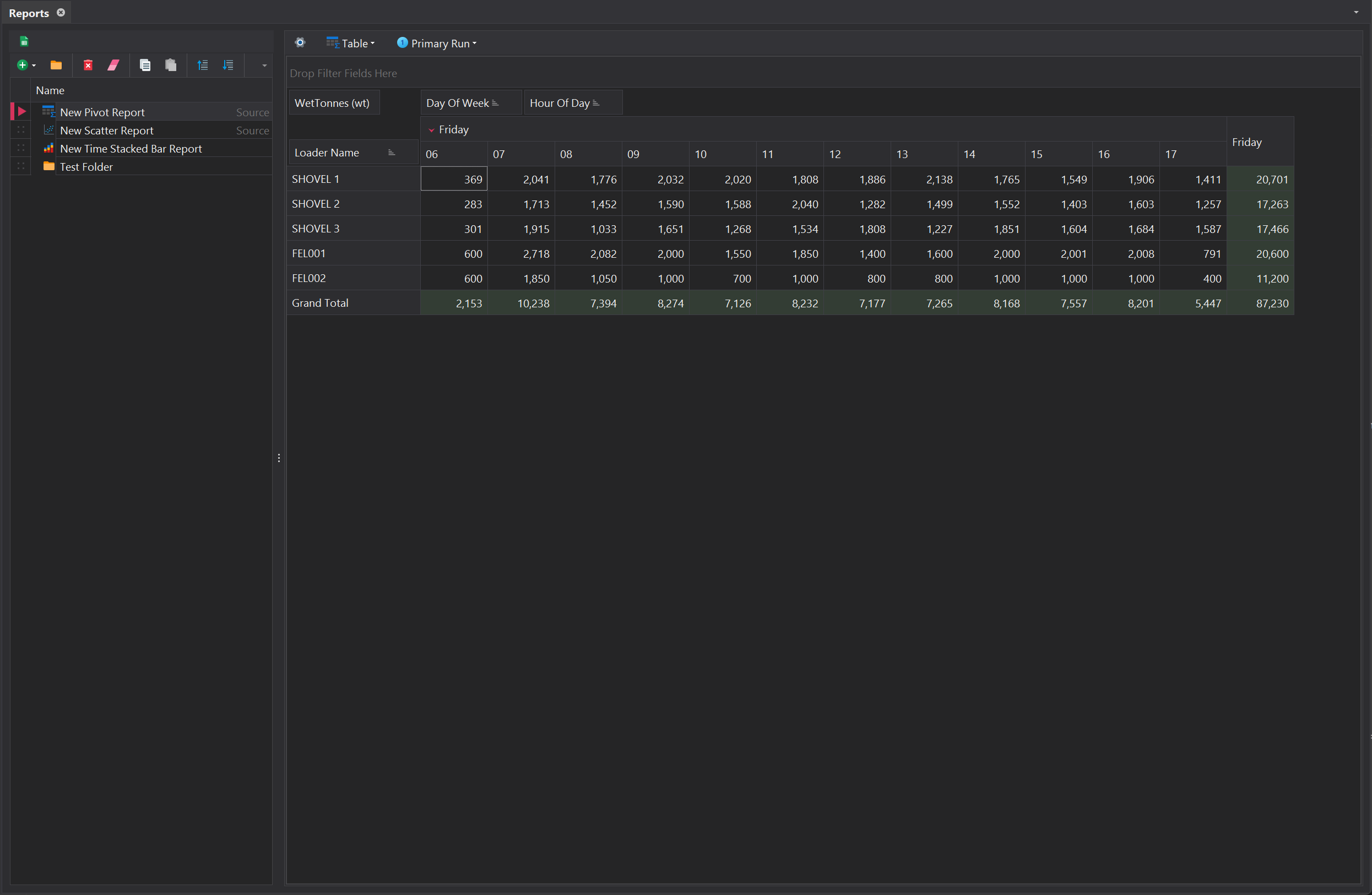 A Report Source provides the underlying data for the given report. Each Report Source focuses on a specific entity, such as trucks or loaders, and includes relevant fields for analysis. Choosing the right Report Source ensures the report reflects the intended aspect of the simulation or operation.